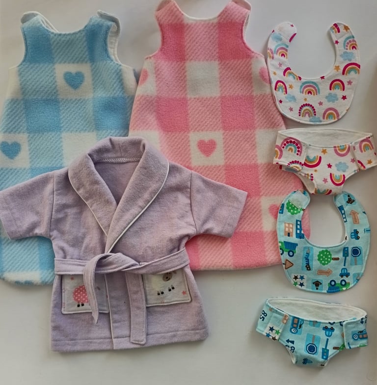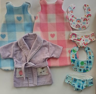 I did finish a few items with some of the velcro I had leftover, two fleece sleepsacks, and two nappy and bib sets. I also finished a flannel dressing jacket.